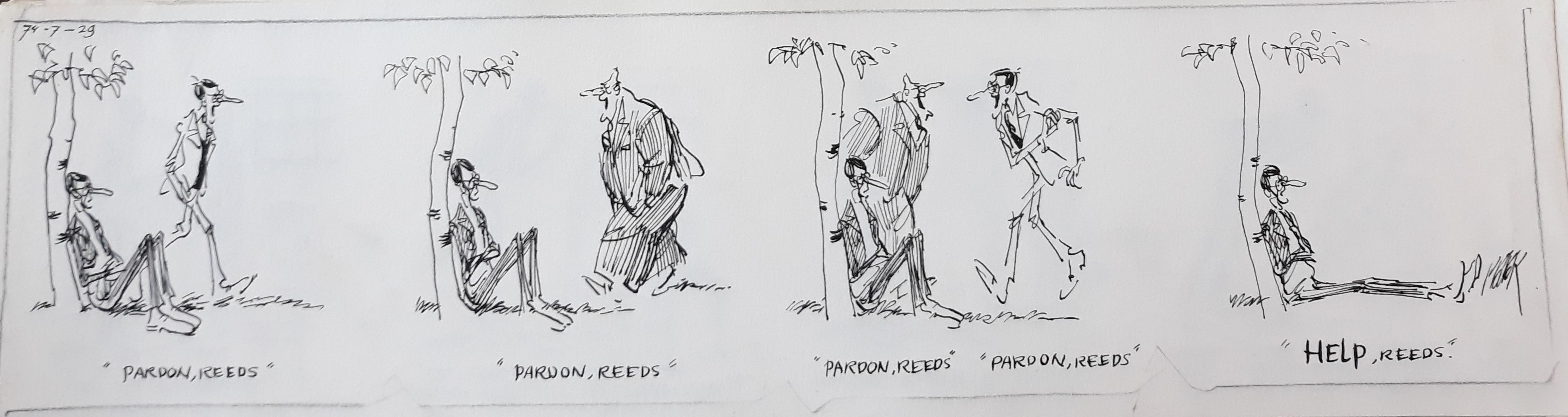 Eind december van het afgelopen jaar verwierf de toen nog Bijzondere Collecties geheten afdeling van de Universiteitsbibliotheek alle originele stroken van de strip Vader & Zoon van Peter van Straaten (1935-2016). Halverwege januari ben ik toen begonnen met de inventarisatie van deze prachtige aanwinst, circa 4500 origineel getekende stroken van Vader & Zoon. De achttien jaar dat de strip verscheen, van 1970 tot en met 1987, was in ‘no time’ verwerkt. Ik zette een jaarkalender van het betreffende jaar op mijn scherm om te zien wanneer de weekenden en de